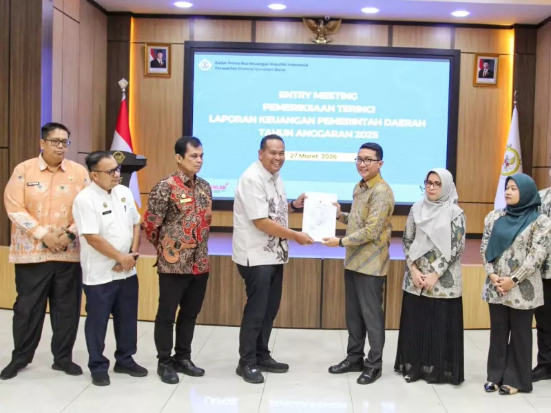 Padang, Amakomedia.com – Jumat siang (27/3/2026), Pemko Pariaman serahkan LKPD kotanya tahun Anggaran (TA) 2025 kepada BPK Perwakilan Provinsi Sumbar di Padang.