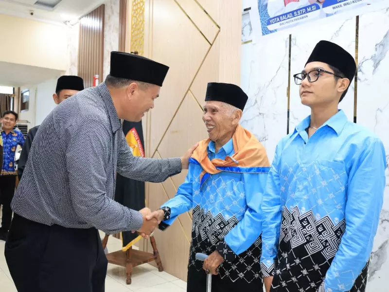 Bertempat di Balairung Pendopo Wali Kota Pariaman, para jamaah asal Kota Tabuik ini dilepas langung Wali Kota Yota Balad menuju Asrama Haji Tabing Padang, Selasa (28/4/2026).