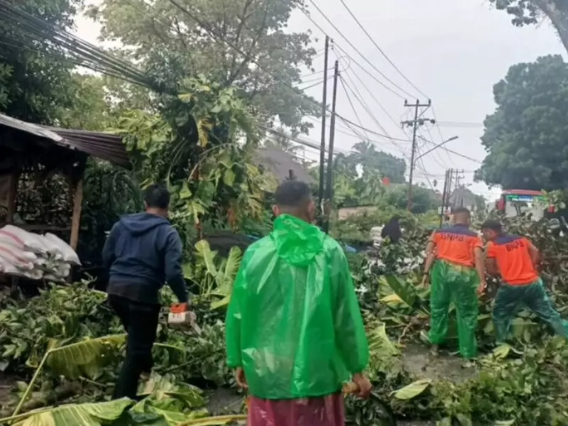 Padang, Amakomedia.com – Sebatang pohon Nangka besar tumbang akibat hujan deras mengguyur Kota Padang sepanjang Jumat malam (17/4/2026) hingga Sabtu dini hari (18/4/2026).